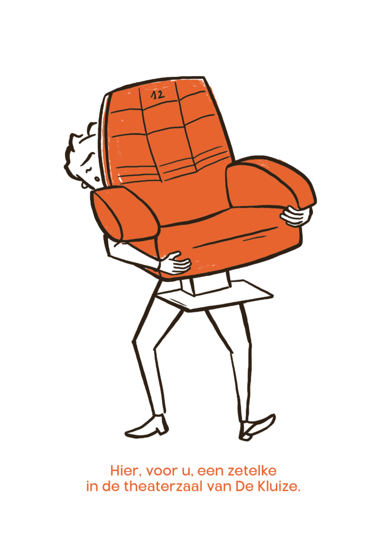 Geef eens een zetelke in de theaterzaal van De Kluize cadeau. Maar neem het niet al te letterlijk. Een zetel losvijzen in de theaterzaal en meenemen naar huis, is echt níet de bedoeling. Maar ge kunt wel de gulle gever zijn van een cadeaubon. Met die bon kan de gelukkige ontvanger één of meerdere keren in zo’n zetel gaan zitten, comfortabel én met uitzicht op een podium waar heel wat schoons te zien en te horen valt. Doen.
