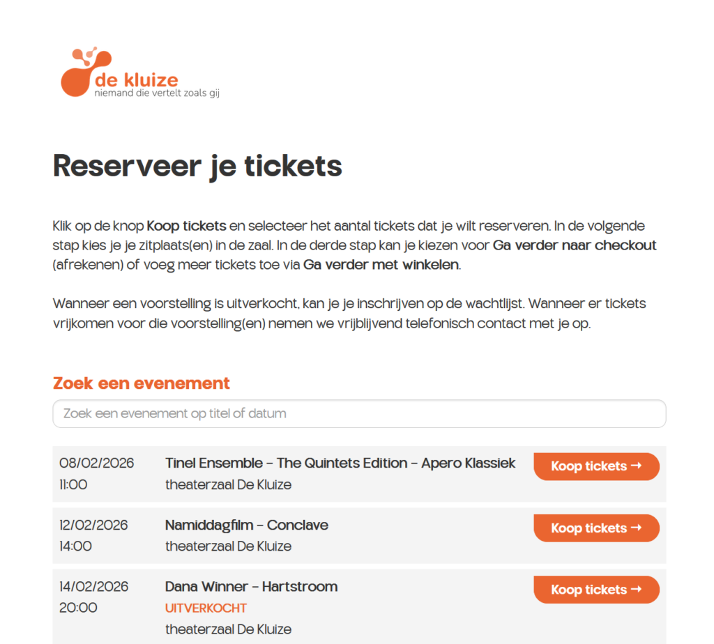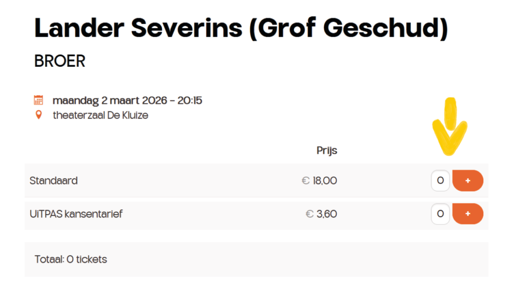 TIP: wil je voor verschillende voorstellingen tickets reserveren? Begin dan met die voorstellingen waar je het liefst tickets voor wilt.