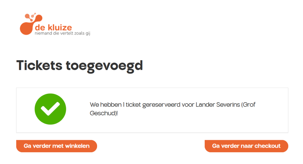 Wil je ook tickets voor andere voorstellingen kopen? Fijn is dat. Klik dan op de knop Ga verder met winkelen (links onderaan) en herhaal voor elke voorstelling stap 2 t.e.m. 6.