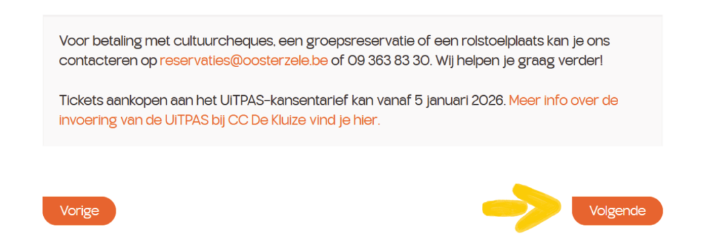 Klaar met het aantal tickets? Klik rechts onderaan op de knop Volgende.